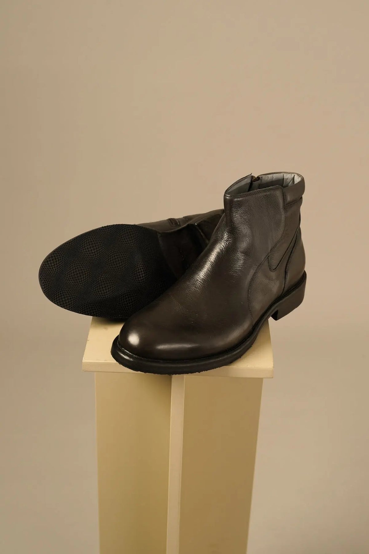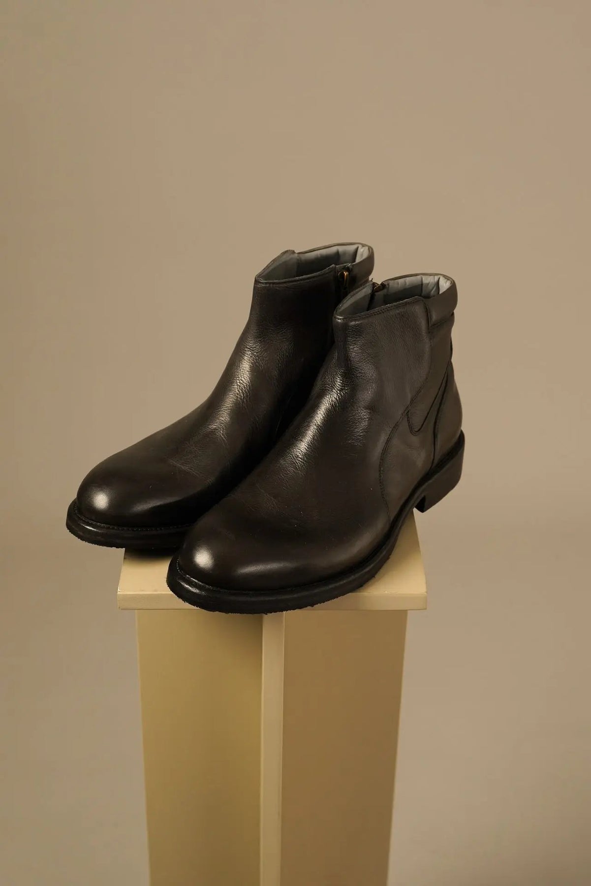 Disse eksklusive støvler fra Golman Copenhagen er fremstillet i førsteklasses bøffelskind, som giver en rå og maskulin elegance med et tidløst udtryk. Den glatte overflade kombineret med skindets naturlige struktur giver støvlen en sofistikeret karakter, mens den robuste sål sikrer maksimal komfort og holdbarhed i hverdagen. Det rene design med diskret lynlås i siden gør modellen nem at tage af og på, og den klassiske silhuet gør den ideel både til formelle anledninger og afslappede outfits.