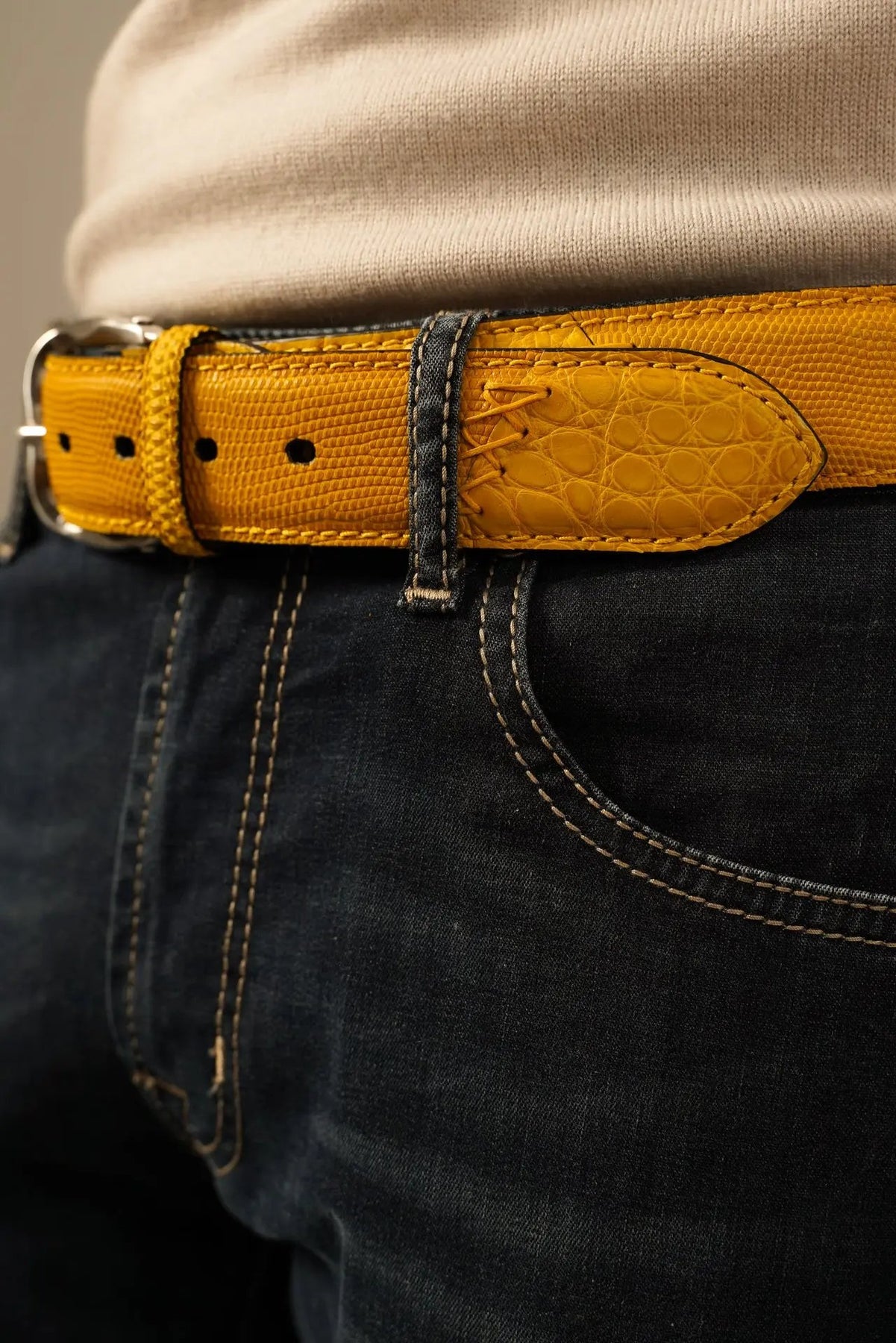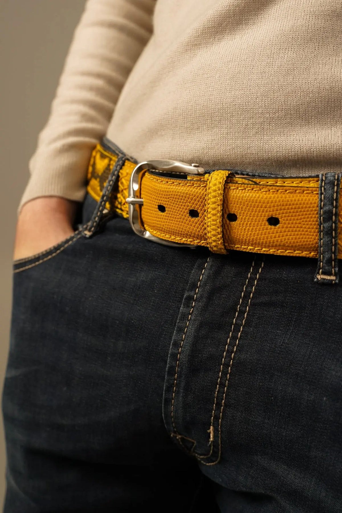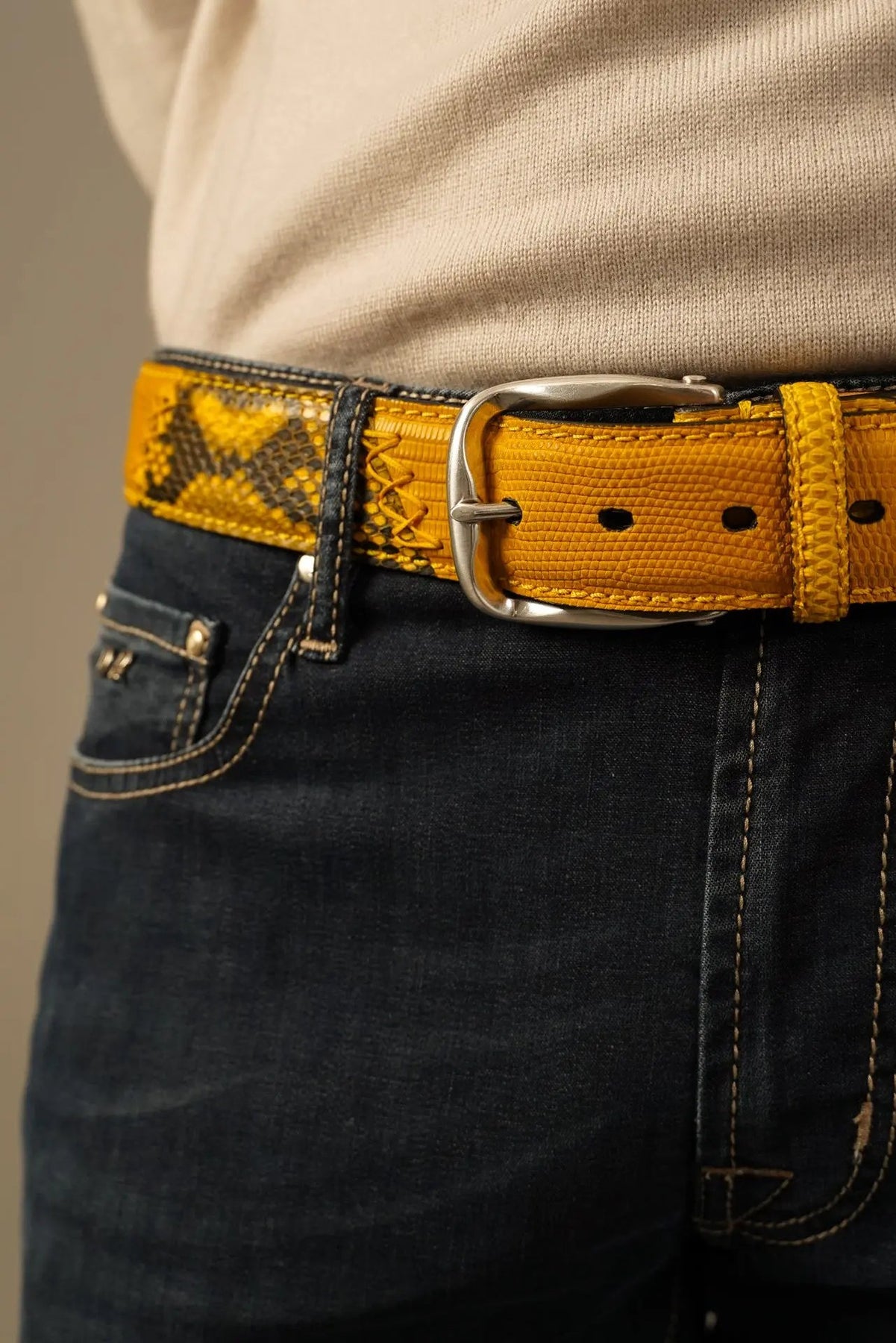 Paolo Vitale Bælte – Gult i Eksklusiv Python, Krokodille og Firben