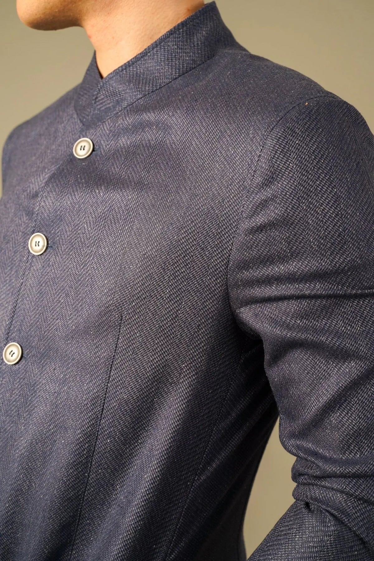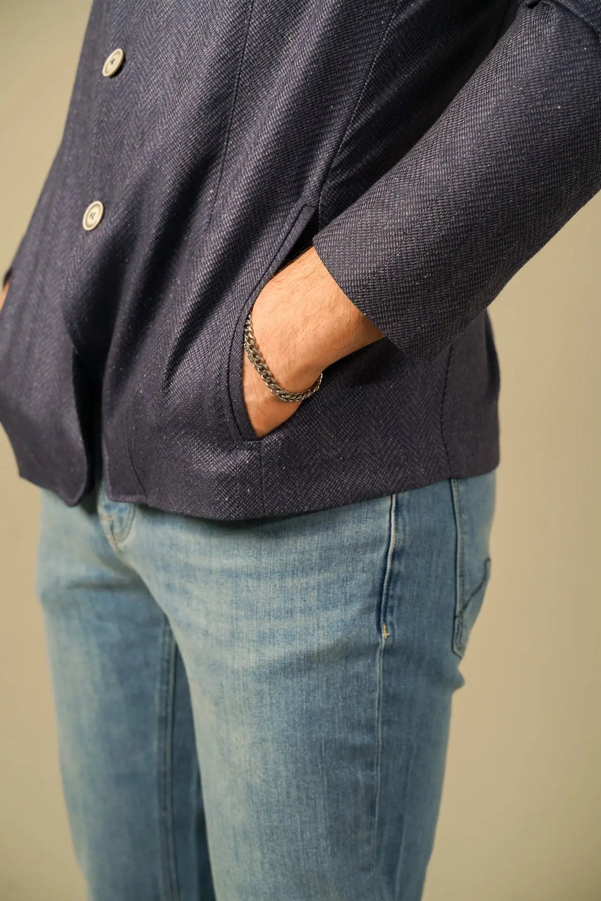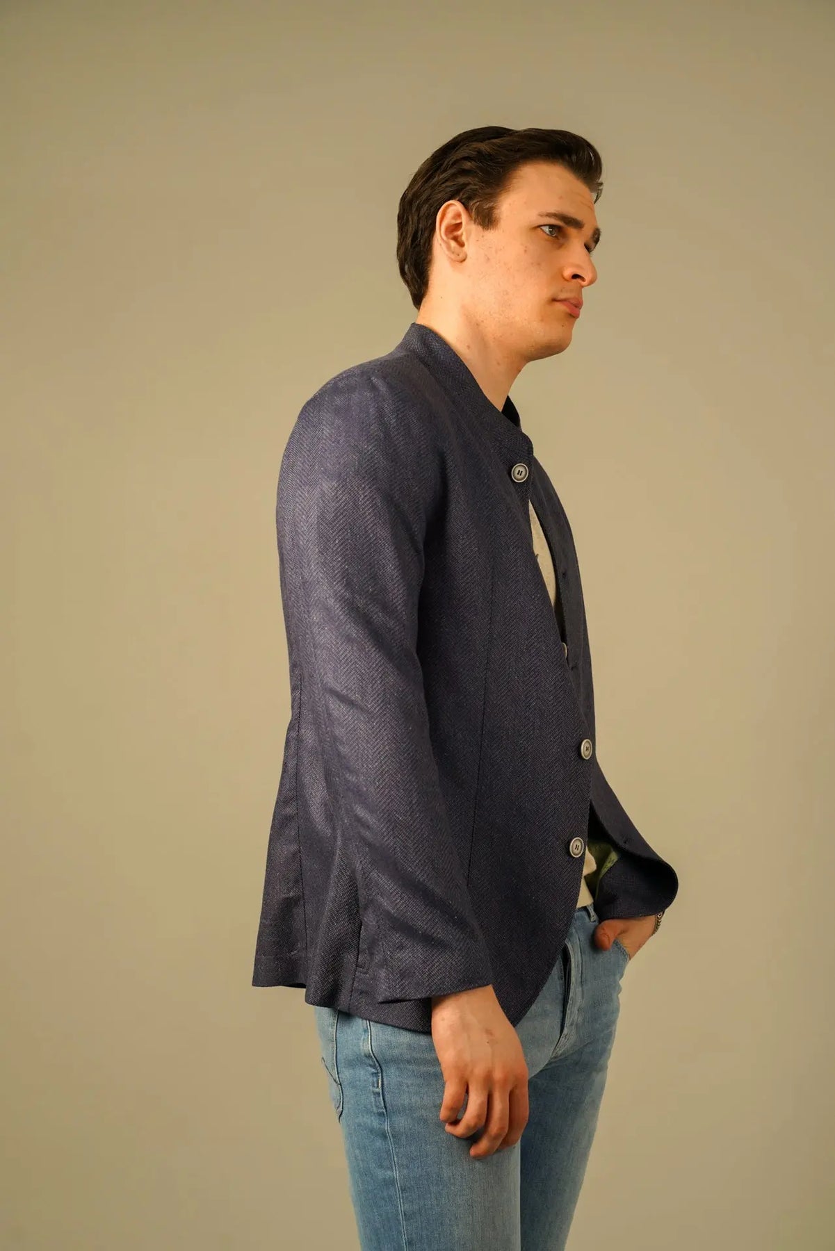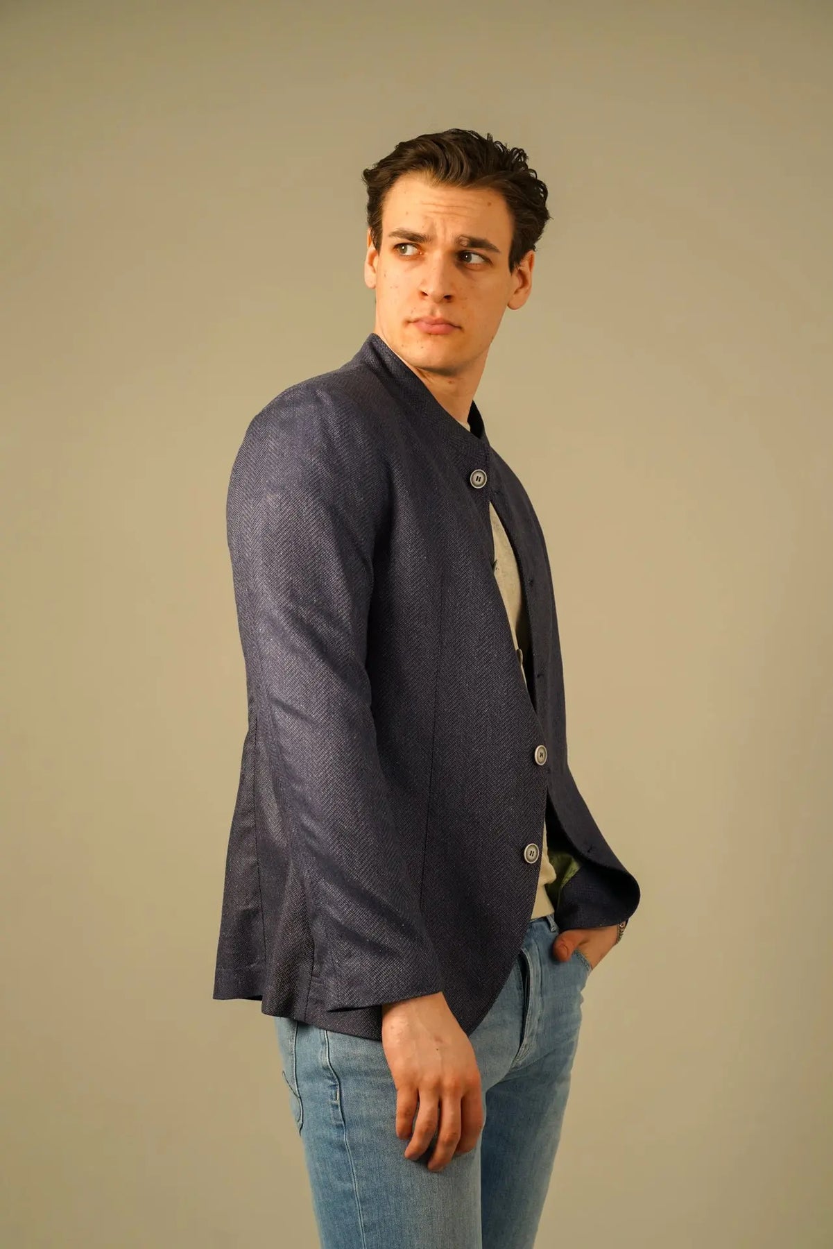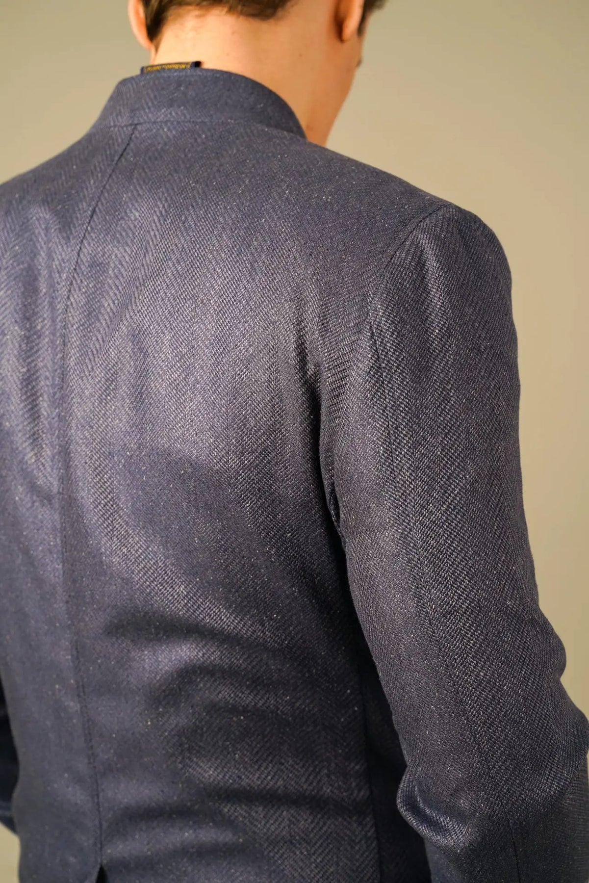 Denne jakke fra Doris Hartwich er et raffineret statement piece, hvor luksuriøs kvalitet møder moderne, skulpturel silhuet. Den dybe blå nuance kombineret med den diskrete struktur i stoffet skaber et elegant og sofistikeret udtryk, der skiller sig ud uden at være prangende.