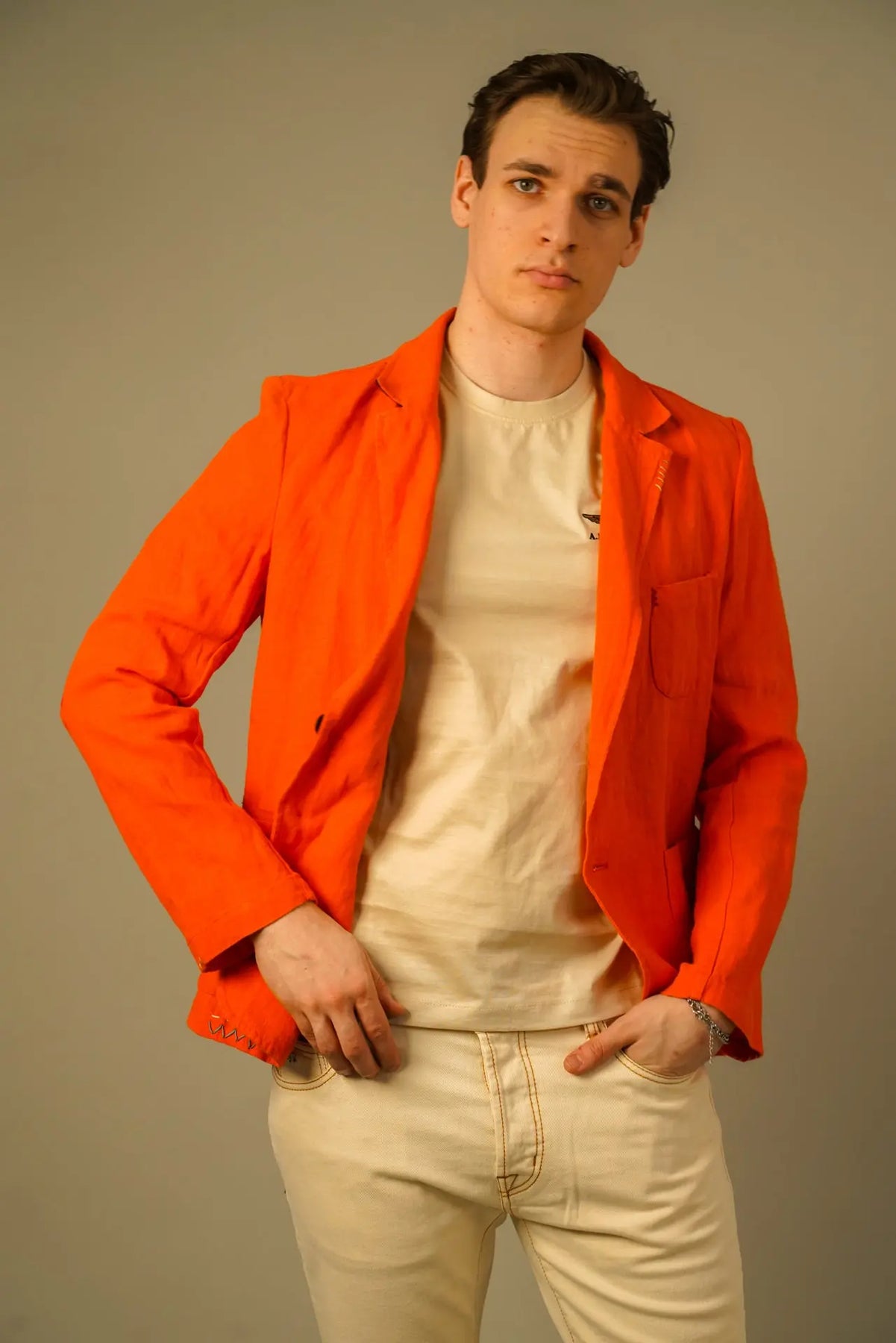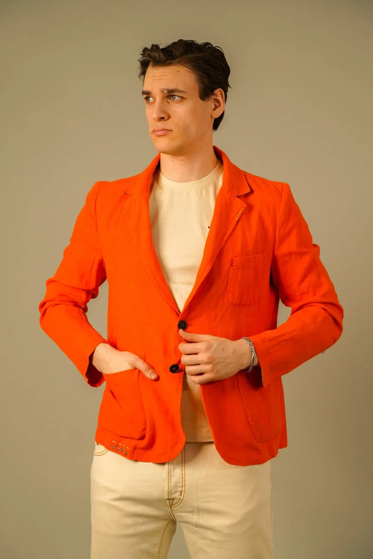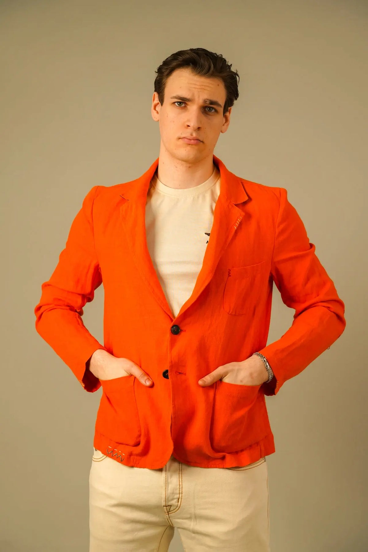 En karakterfuld blazer fra Golman Copenhagen, skabt til manden der ønsker et selvsikkert og eksklusivt udtryk. Den markante orange farve tilfører energi og personlighed, mens den rene silhuet holder looket elegant og sofistikeret.