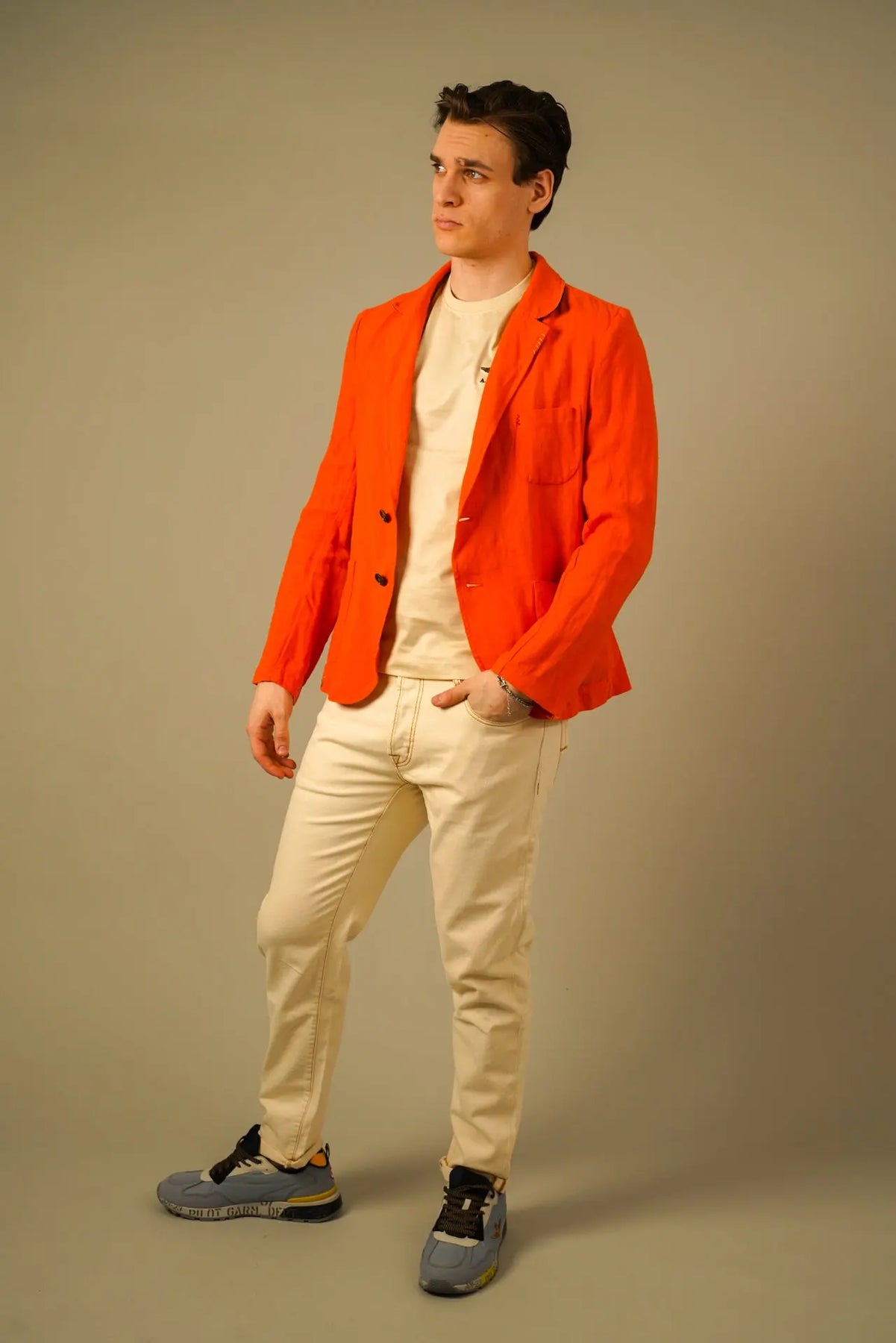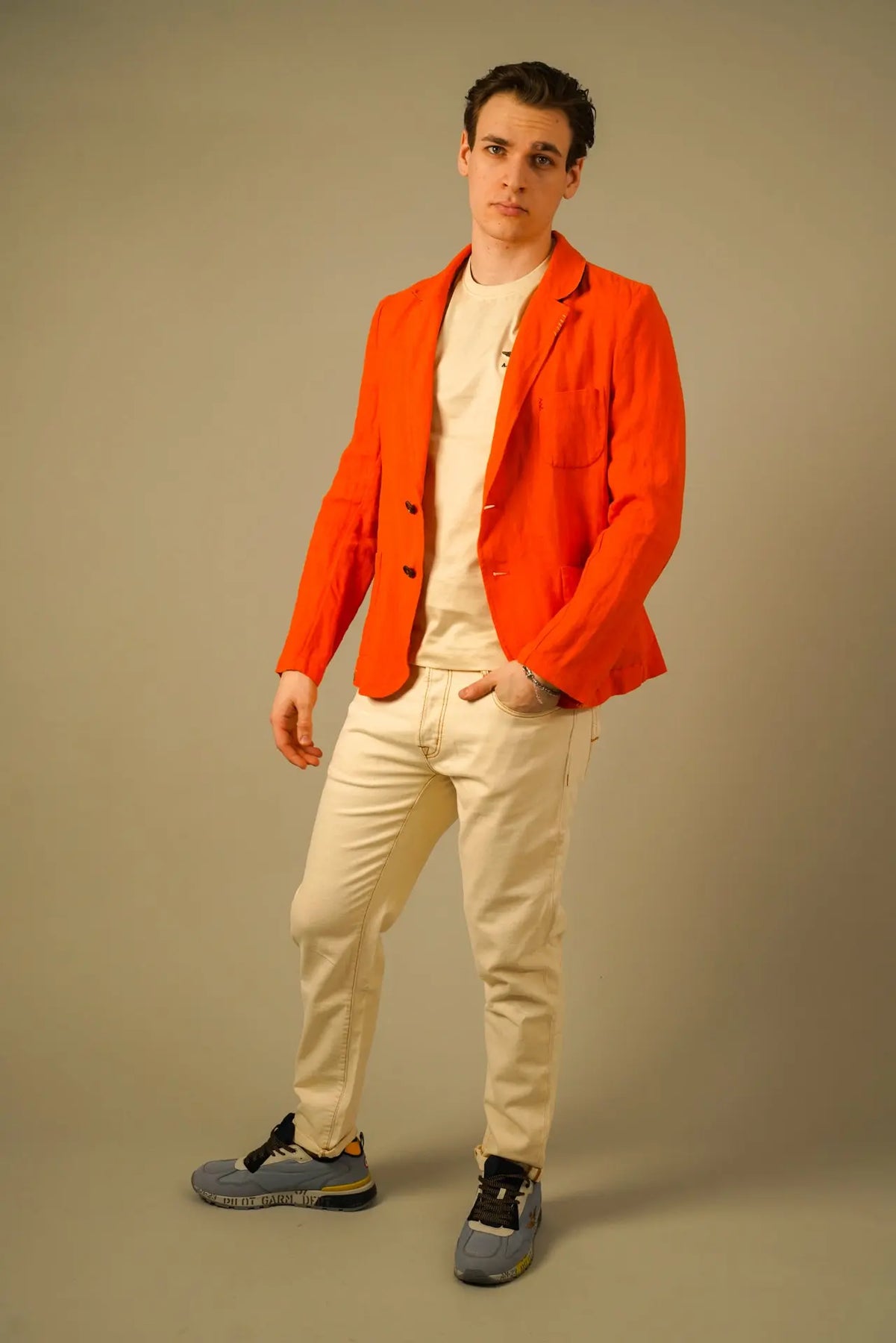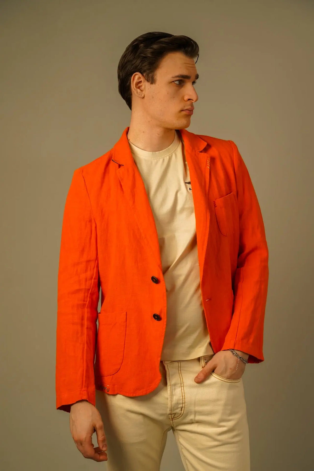 En karakterfuld blazer fra Golman Copenhagen, skabt til manden der ønsker et selvsikkert og eksklusivt udtryk. Den markante orange farve tilfører energi og personlighed, mens den rene silhuet holder looket elegant og sofistikeret.