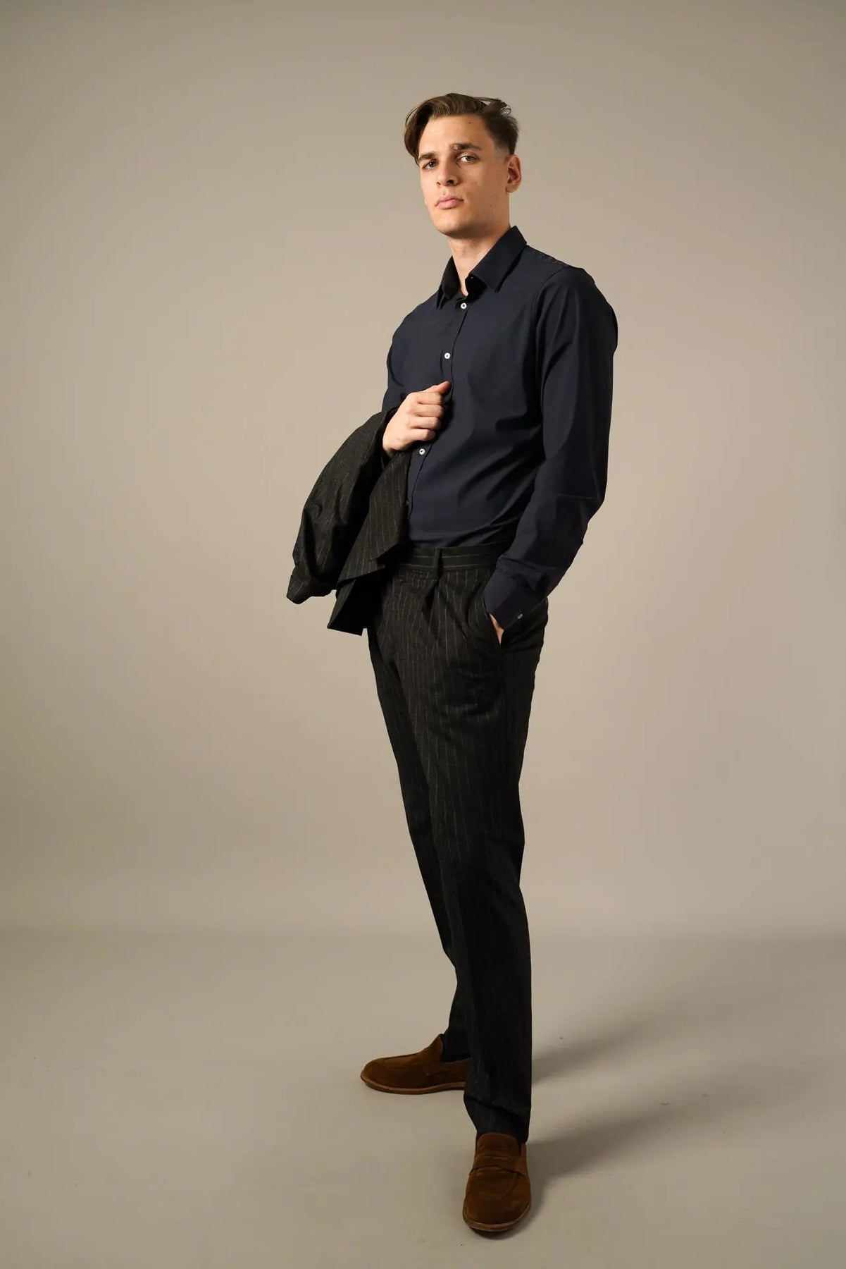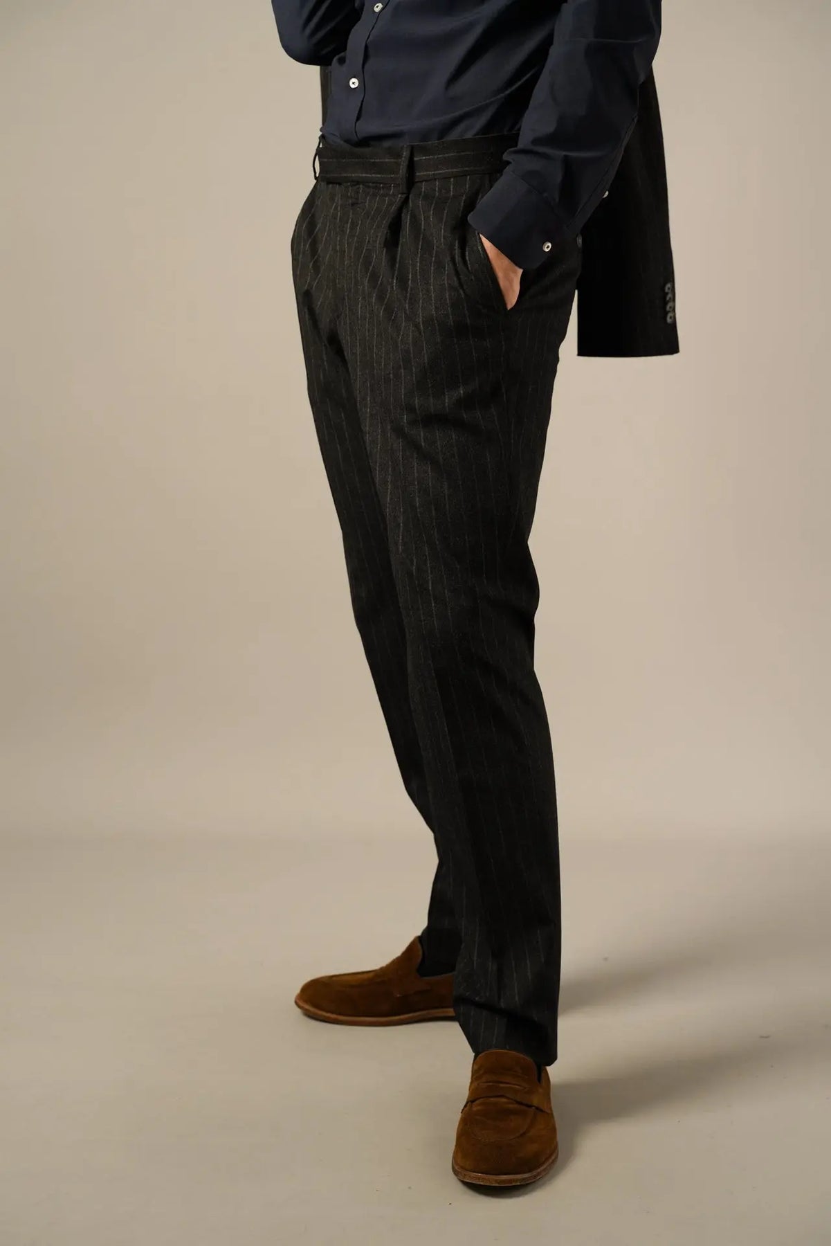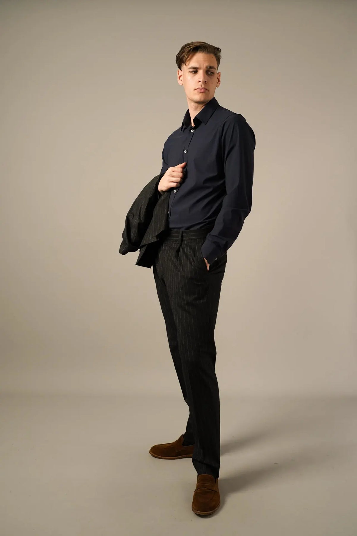 Opgrader garderoben med disse eksklusive Hechter bukser i et sofistikeret wool look, designet til den moderne mand med sans for klassisk stil og komfort. Bukserne kombinerer et tidløst udtryk med diskrete nålestriber, der tilfører elegance og raffinement til både forretnings- og hverdagsbrug. Den fine tekstur giver et luksuriøst udtryk, mens det lette materiale sikrer høj komfort hele dagen. Perfekte til både skjorte og blazer eller en mere afslappet styling med strik og loafers.