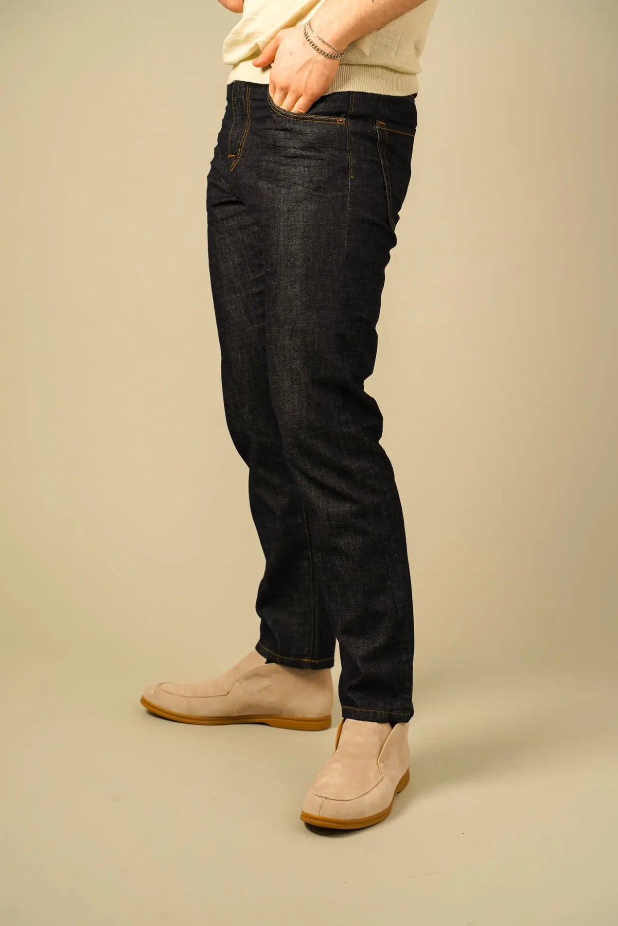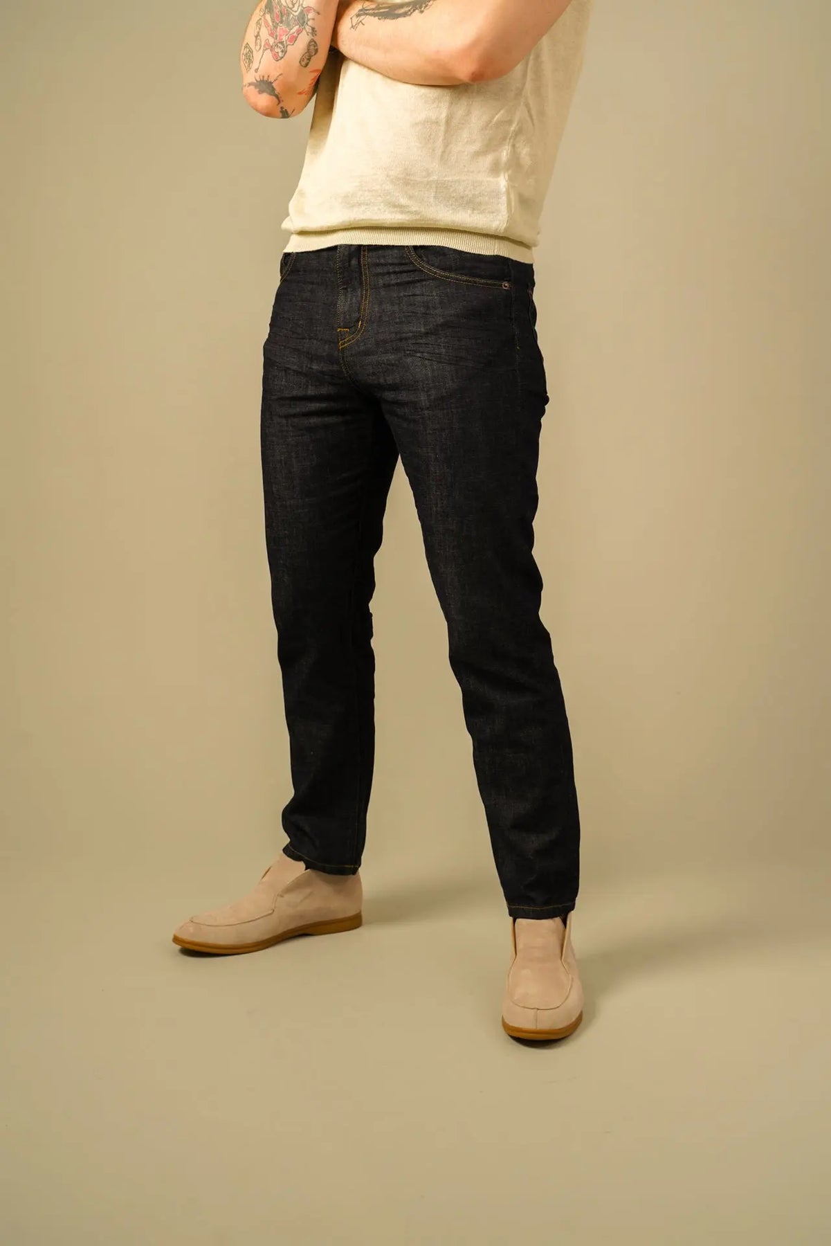 Disse jeans fra Teleria Zed er et stærkt bud på en moderne klassiker, hvor tidløst design møder høj komfort. Den dybe mørke vask giver et eksklusivt og alsidigt udtryk, der fungerer lige godt til både afslappede og mere velklædte outfits.