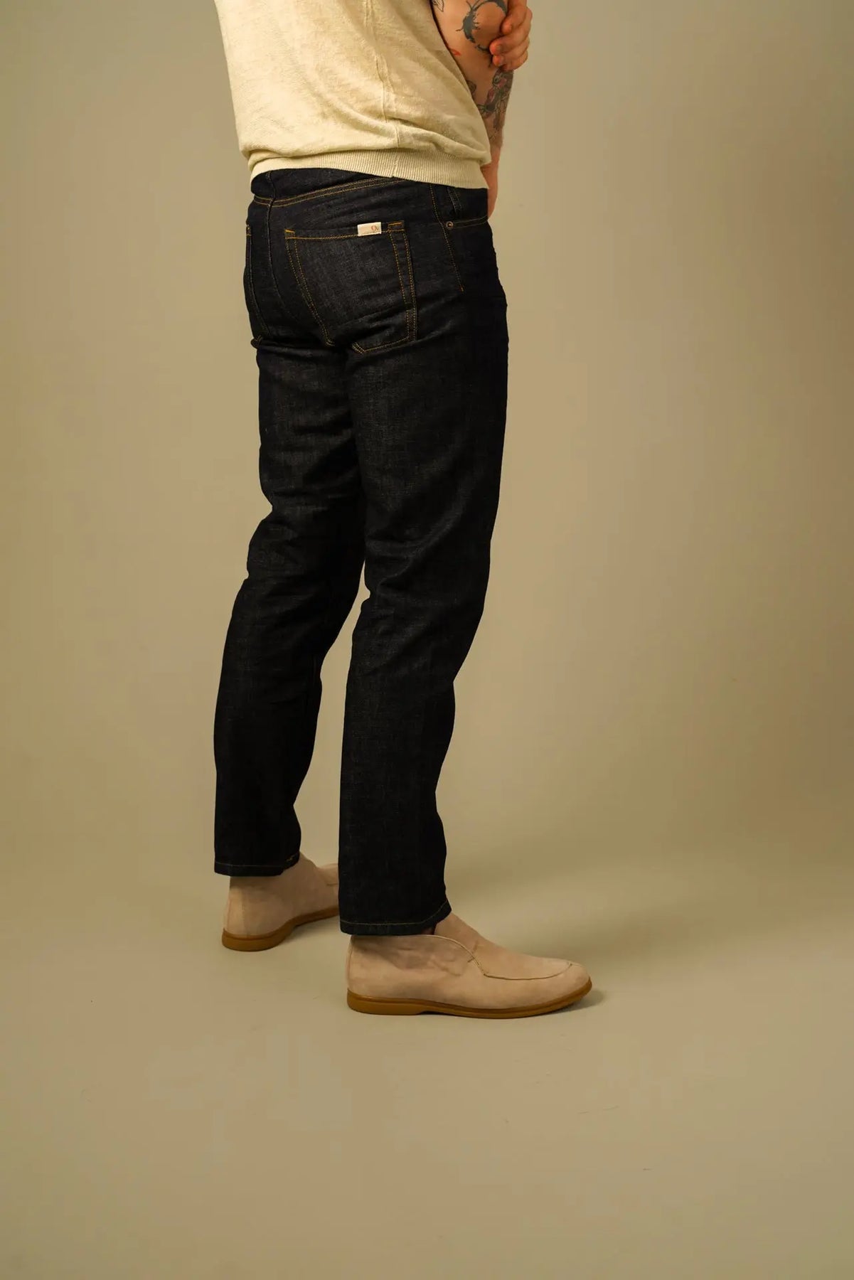 Den rene straight leg pasform skaber en skarp silhuet med en naturlig balance mellem komfort og struktur. Fremstillet i 100% bomuld får du en autentisk denimfølelse, som kun bliver bedre med tiden og former sig efter kroppen ved brug.