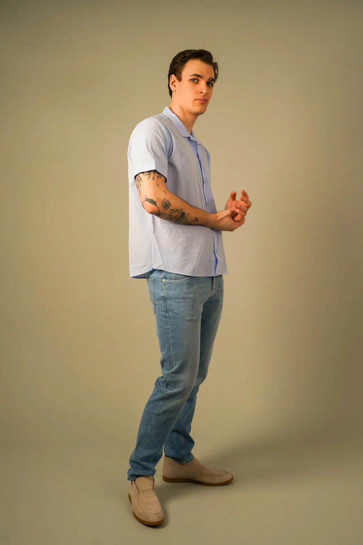 Karl Lagerfeld kortærmet skjorte i lyseblå modern fit