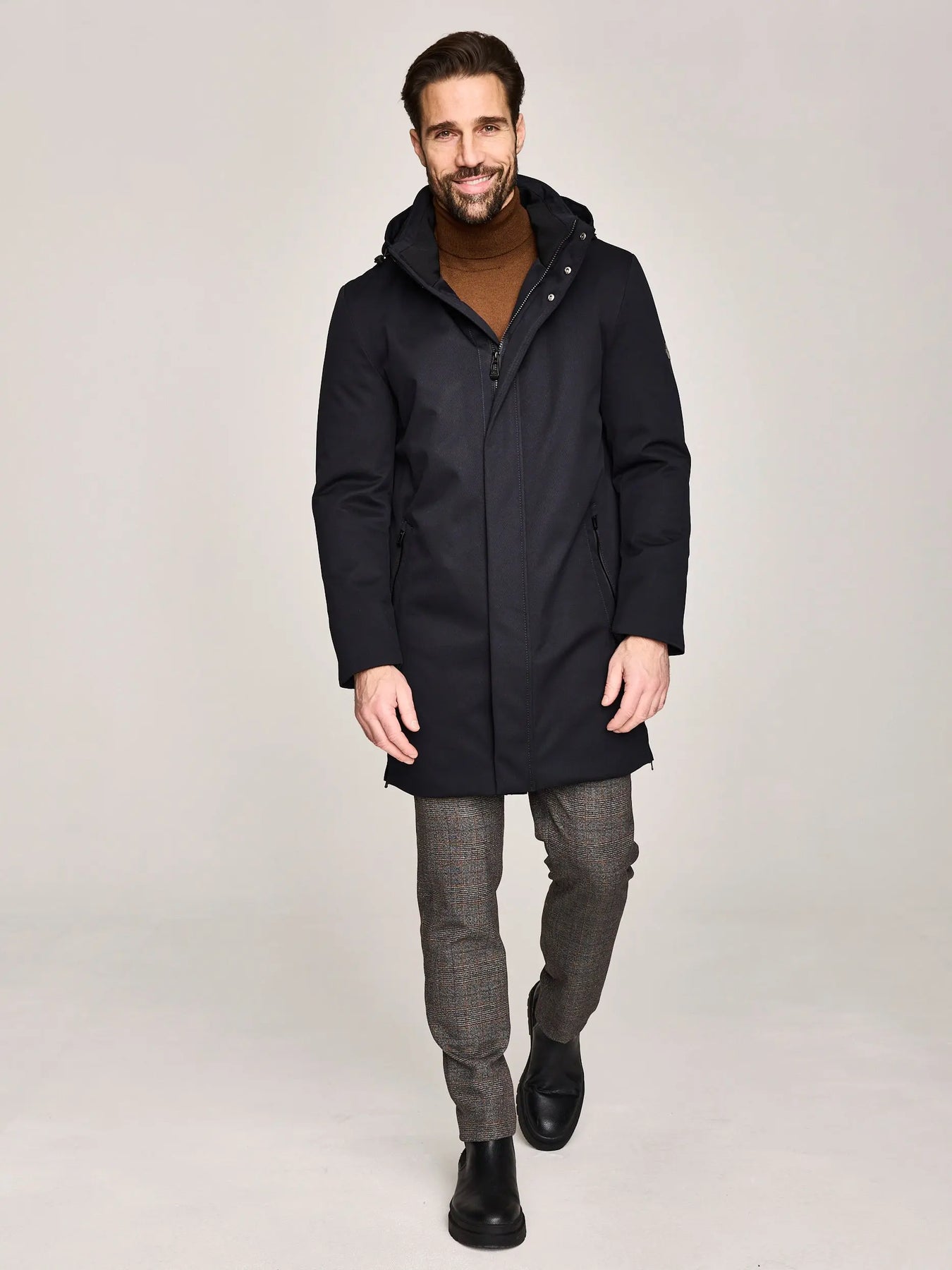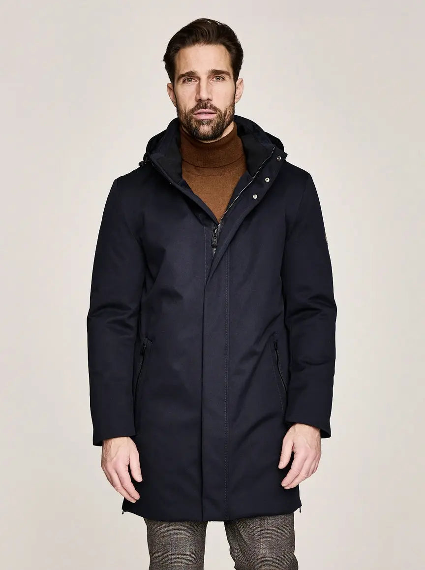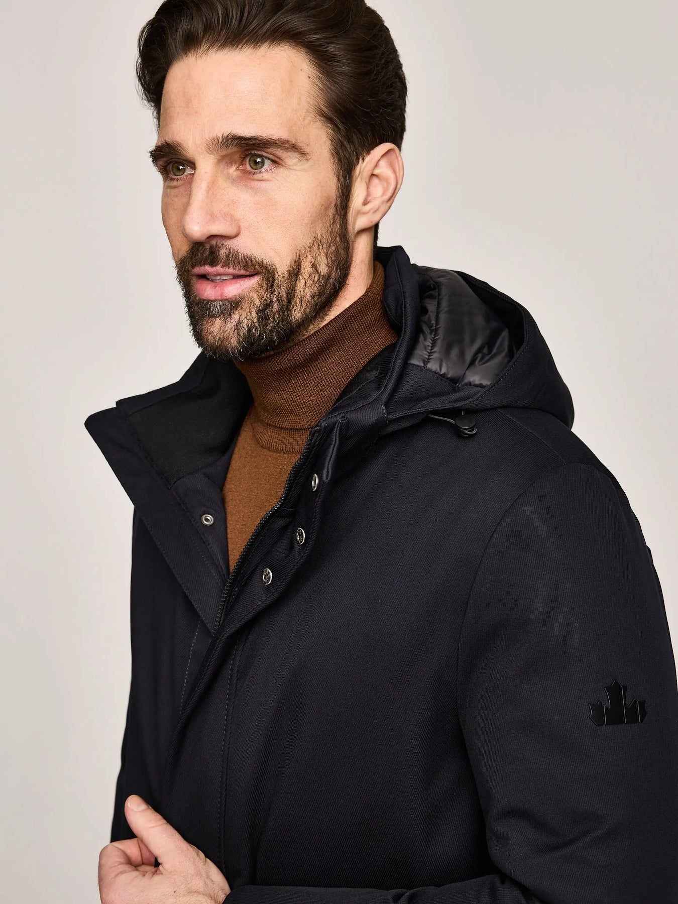 Denne eksklusive vinterjakke fra New Canadian forener et elegant uldlook med moderne funktionalitet og kompromisløs komfort. En jakke skabt til manden, der forventer mere end blot varme – og som værdsætter stil, kvalitet og ansvarlige materialer.