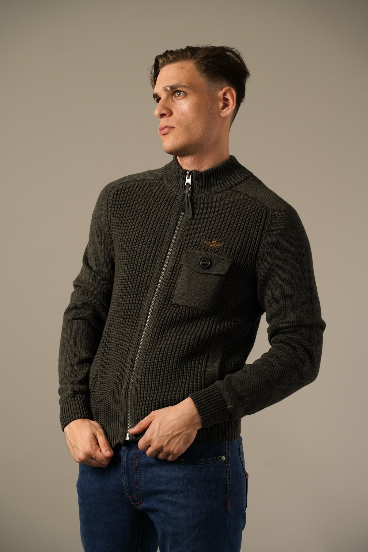Aeronautica Militare Mørkegrøn Striktrøje med Lynlås